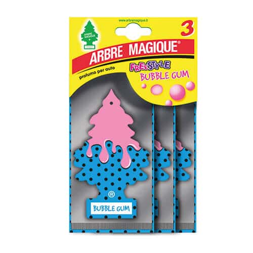 Arbre Magique Bubblegum Freestyle: een kleurige zoete geur die doet denken aan het wel bekende snoepje Bubblegum. Ontdek een gloednieuwe zoete en leuke cocktail, bestaande uit een boeket van vanille, rood fruit en talk. Deze geurboom zal je verrassen met vreugde en je terugbrengen naar de tijd toen je nog een tiener was.